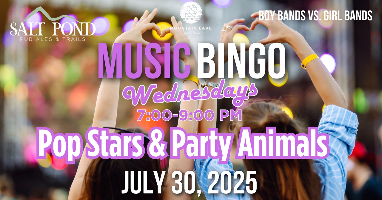 Mountain Lake Lodge continues Music Bingo Wednesdays with Pop Stars & Party Animals on Wednesday, July 30, 2025.
