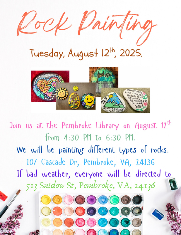 The Pembroke Library presents a Rock Painting Night on Tuesday, August 12, 2025.