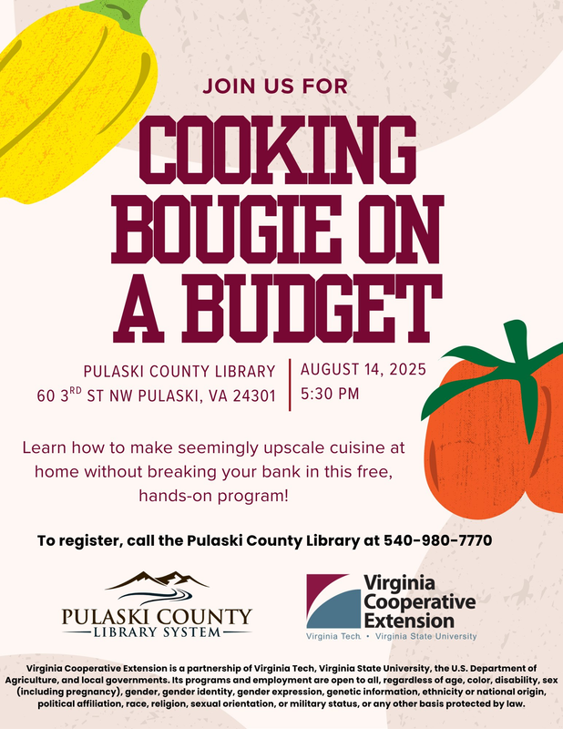 The Pulaski County Library presents the program "Cooking Bougie On A Budget" on Thursday, August 14, 2025.