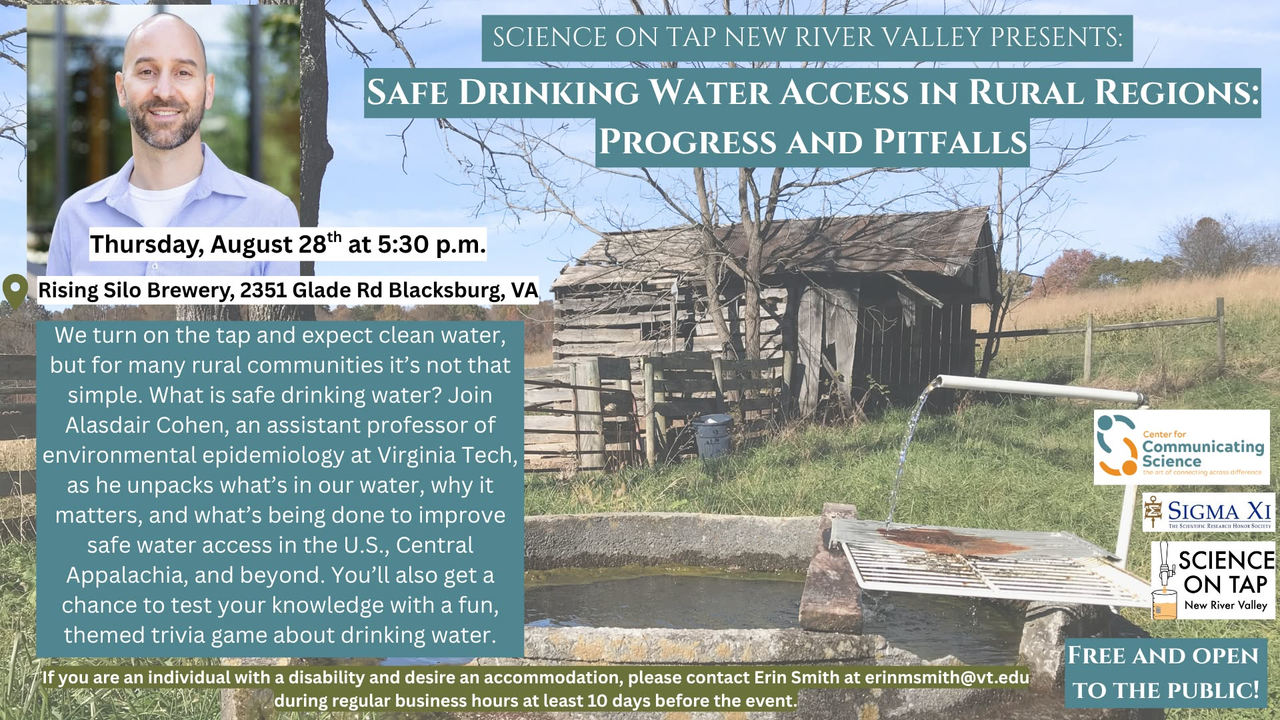 Science on Tap New River Valley's August Program: Safe Drinking Water Access in Rural Regions