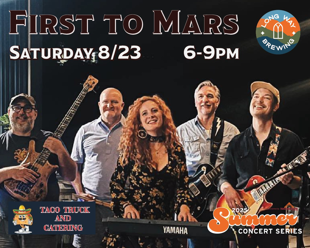 Long Way Brewing presents First to Mars in concert on Saturday, August 23, 2025.