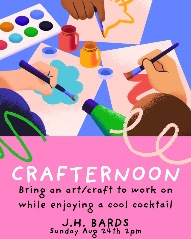 J.H Bards Spirit Co. presents Crafternoon on Sunday, August 24, 2025.