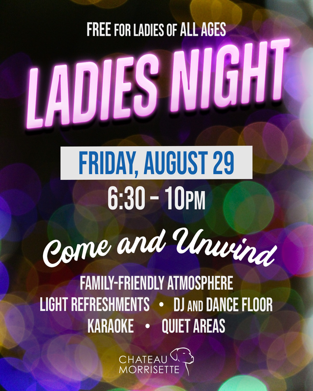 Chateau Morrisette presents their August Ladies Night on Friday, August 29, 2025.