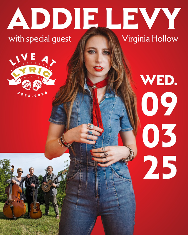 The Lyric Theatre kicks off their Live at the Lyric 2025-2026 Concert Series with Addie Levy and special guest Virginia Hollow on Wednesday, September 3, 2025.