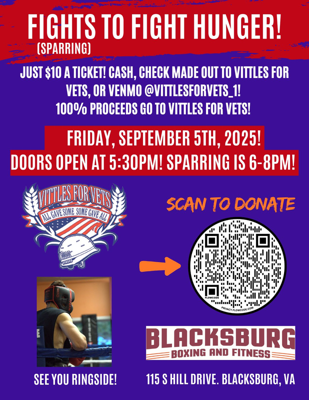 Blacksburg Boxing and Fitness and Vittles for Vets presents Fights To Fight Hunger featuring boxing sparring sessions on Friday, September 5, 2025.