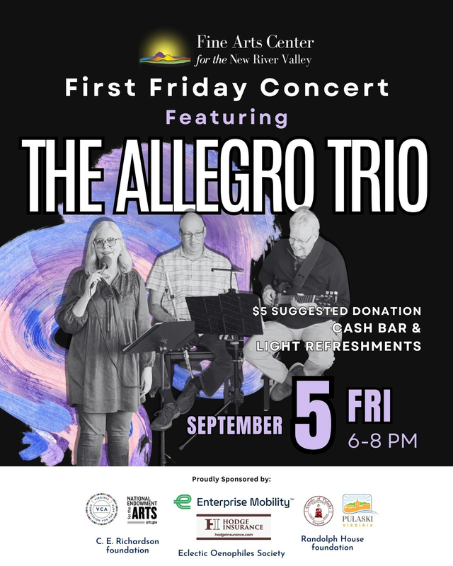The Fine Arts Center for the New River Valley presents their September Listening Room Concert featuring the Allegro Trio on Friday, September 5, 2025.