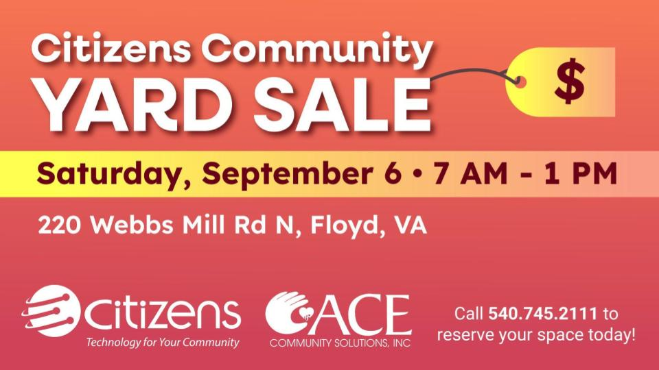 Citizens Telephone Coop presents their Community Yard Sale and Food & Baked Goods Fundraiser on Saturday, September 6, 2025.