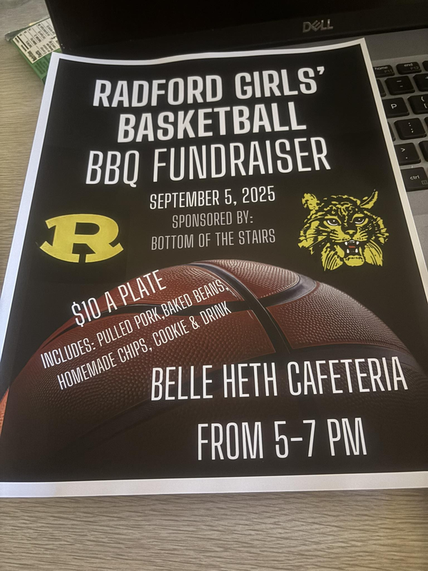 The Radford High Girls Basketball team holds a BBQ Plate Fundraiser on Friday, September 5, 2025 in the Belle Heth Elementary Cafeteria.