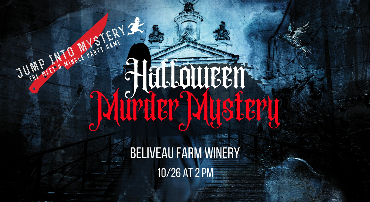 Beliveau Farm Winery and Jump Into Mystery presents a Halloween Murder Mystery on Sunday, October 26, 2025.