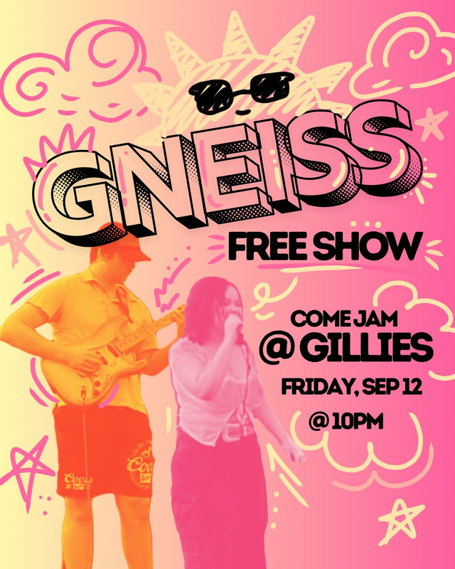 Gillie's presents Gillie's Late Nights with Gneiss in concert on Friday, September 12, 2025.