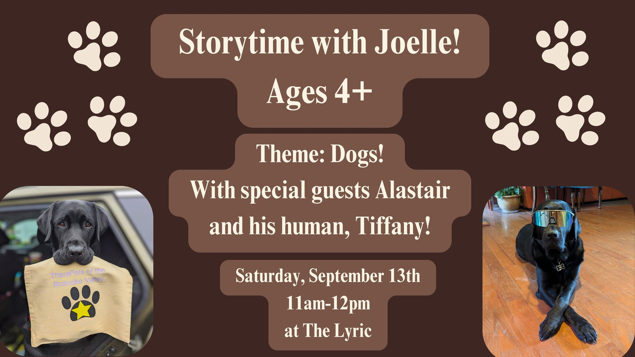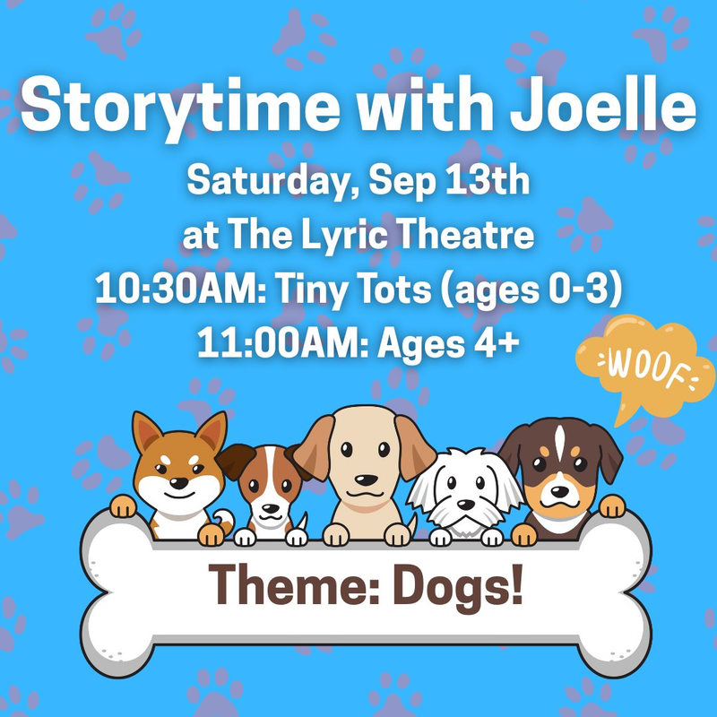 The Lyric Theatre presents Story Time with Joelle with the theme "Dogs" with a special furry guest on Saturday, September 13, 2025.