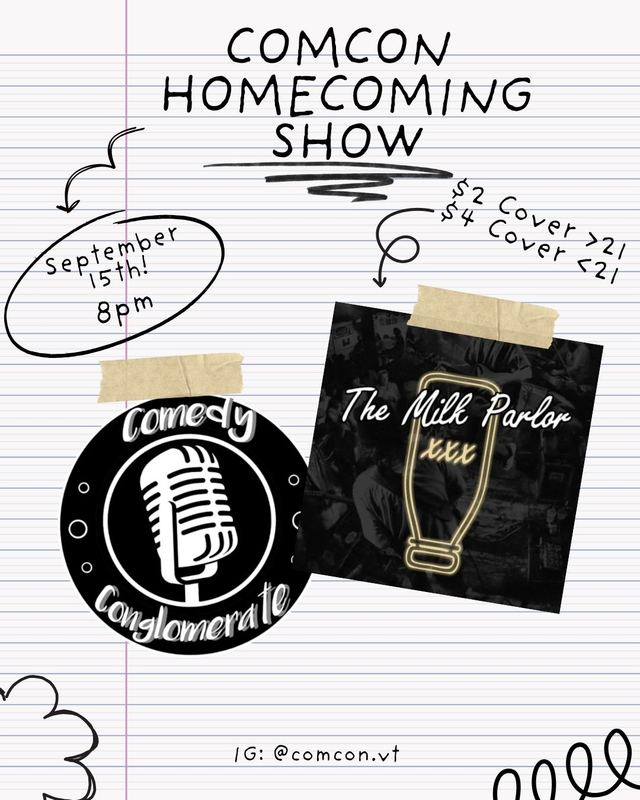 The Comedy Conglomerate at Virginia Tech presents their Homecoming Show at The Milk Parlor on Monday, September 15, 2025.