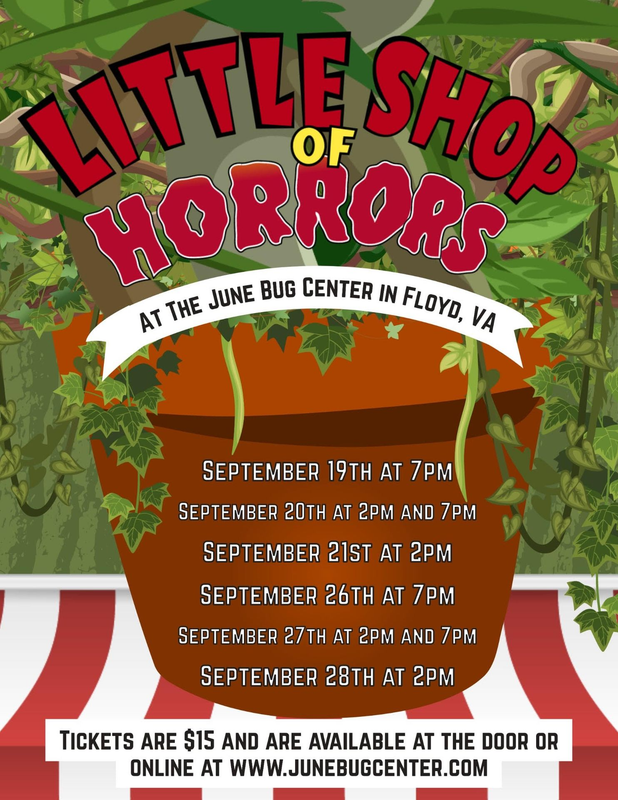 The New River Theatre Guild presents the play "Little Shop of Horrors" with eight performances starting on Friday, September 19, 2025 through Sunday, September 28, 2025 at The June Bug Center in Floyd, VA.