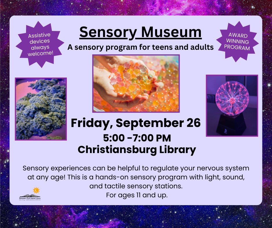 The Christiansburg Library presents a Sensory Museum on Friday, September 26, 2025.