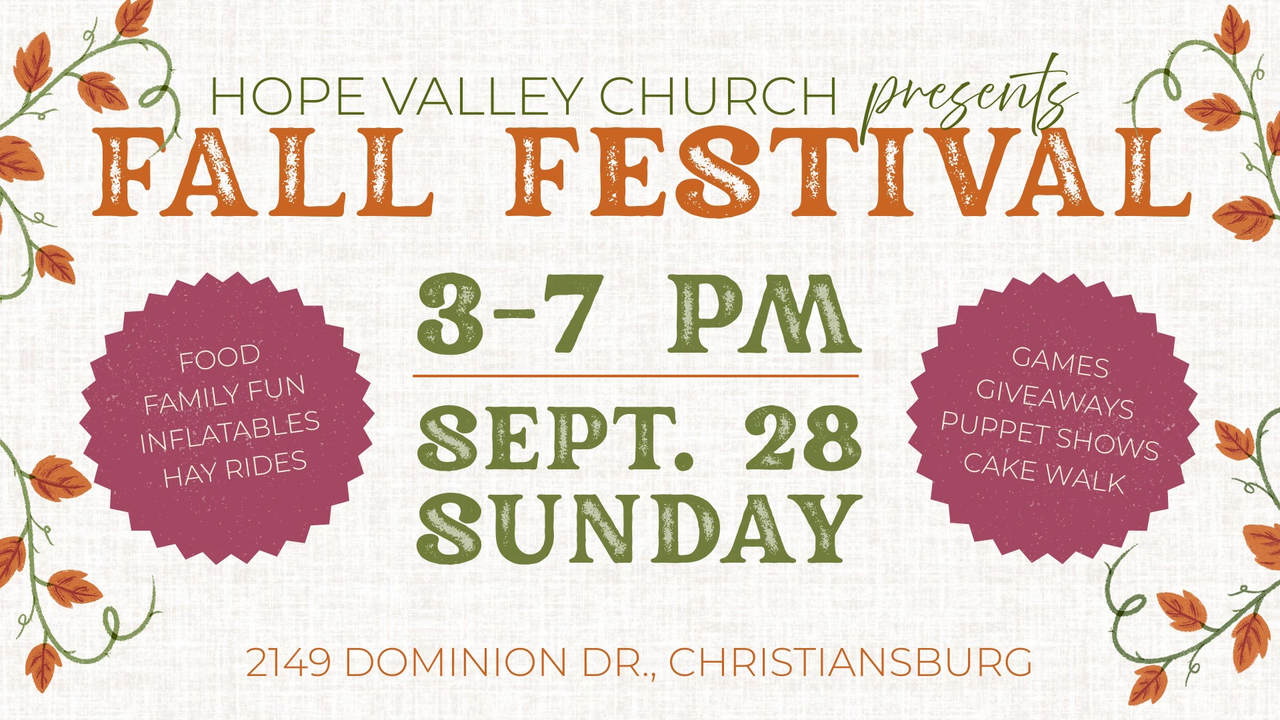 Hope Valley Church presents their 2025 Fall Festival on Sunday, September 28, 2025.