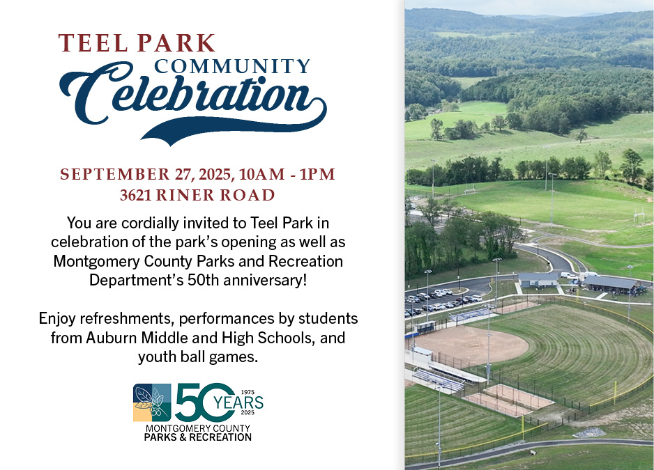 You're invited to a community celebration of the new Teel Park and the 50th anniversary of Montgomery County's Parks and Recreation Department!