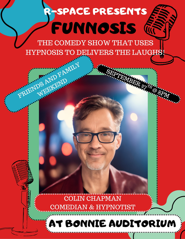 As part of Radford University Family & Friends Weekend, Radford University presents the comedy show "Funnosis with Colin Chapman" on Saturday, September 27, 2025 inside the Bonnie Hurlburt Hall Auditorium on the campus of Radford University.