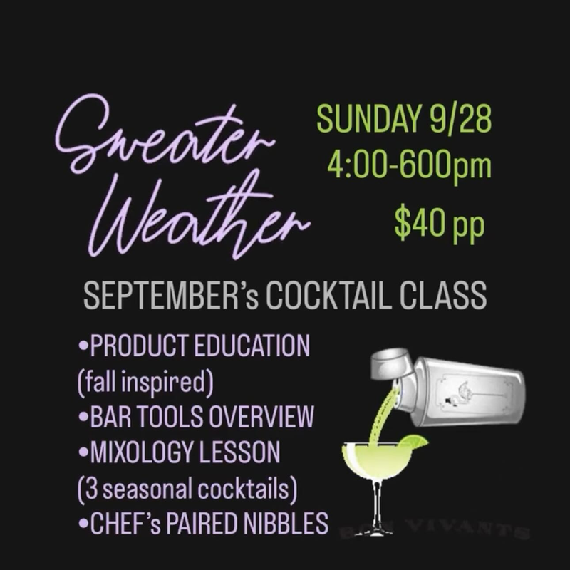 Twisted Liquid Blacksburg presents Sweater Weather - September's Cocktail Class on Sunday, September 28, 2025.