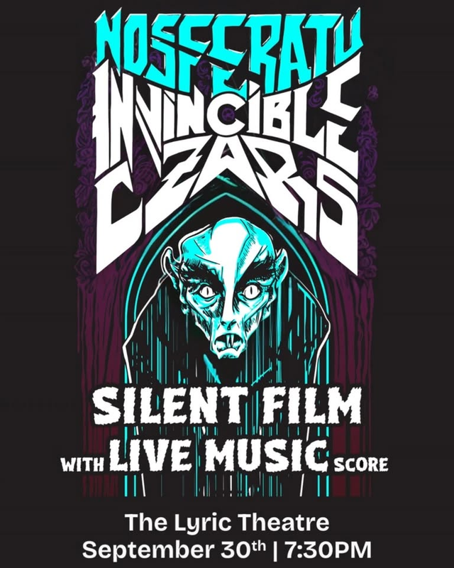 The Lyric Theatre presents a screening of "Nosferatu" with a live score by the Invincible Czars on Tuesday, September 30, 2025.