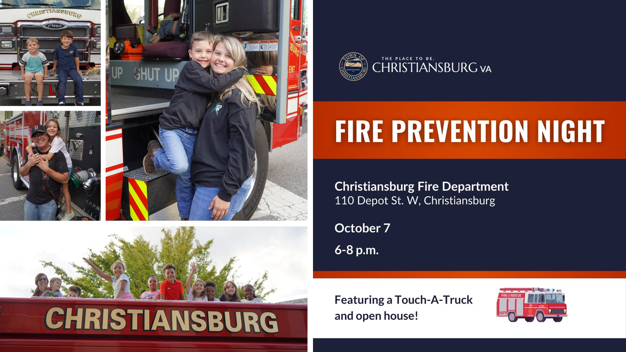 The Christiansburg Volunteer Fire Department presents the 2025 Fire Prevention Night and Touch-A-Truck on Tuesday, October 7, 2025.