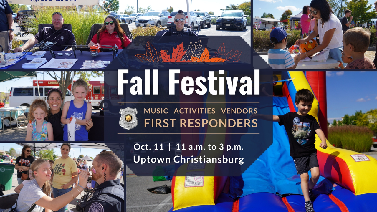 The Christiansburg Police Department hosts the 24th Annual Fall Festival on Saturday, October 11, 2025 at Uptown Christiansburg's (formerly New River Valley Mall) parking lot.