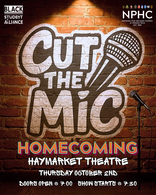 The Black Student Alliance at Virginia Tech presents Cut The Mic on Thursday, October 2, 2025 inside the Haymarket Theater, located within the Squires Student Center, on the campus of Virginia Tech.