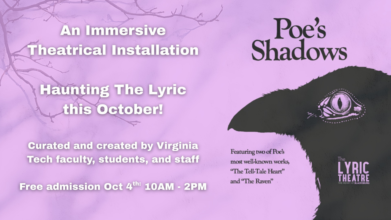 The Lyric Theatre hosts An Immersive Theatrical Installation titled "Poe's Shadows" on Saturday, October 4, 2025 at The Lyric Theatre in Blacksburg, VA.