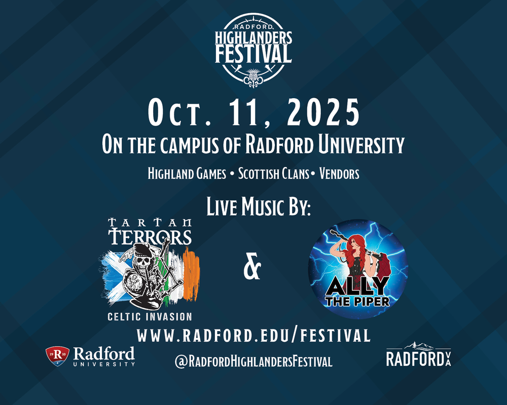 Radford University and the City of Radford present the 28th Radford Highlanders Festival on Saturday, October 11, 2025 at Radford University's Moffett Field.