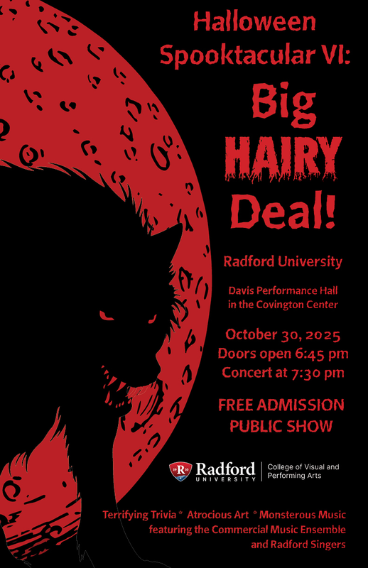 Radford University College of Visual & Performing Arts presents the Halloween Spooktacular VI titled "Big Hairy Deal" on Thursday, October 30, 2025 in Performance Hall located within the Covington Center on the campus of Radford University.