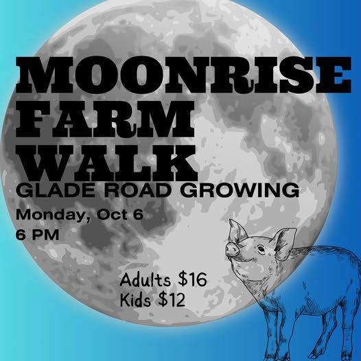 Glade Road Growing presents Moonrise Farm Walk for Kids and Adults on Monday, October 6, 2025.