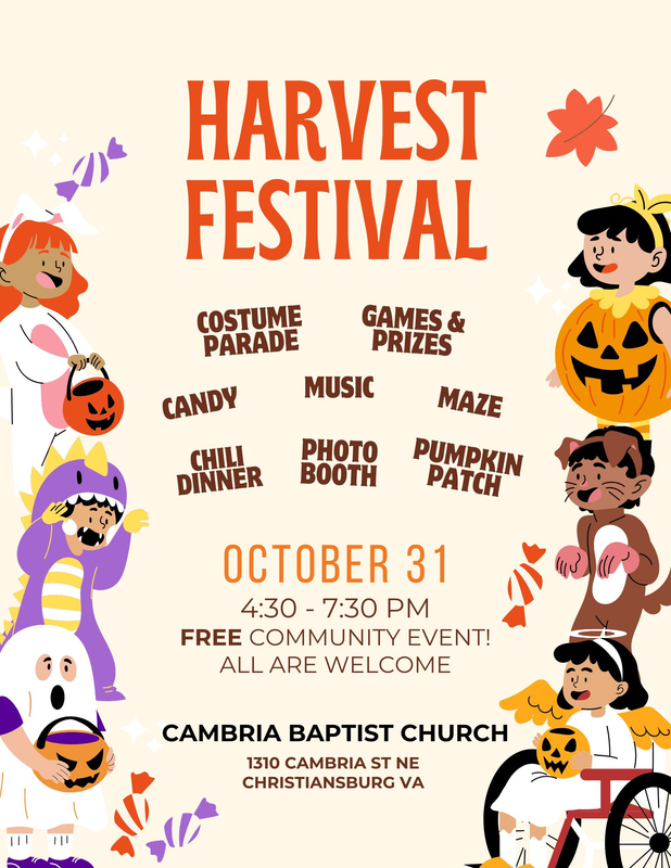Cambria Baptist Church presents their Harvest Festival 2025 on Friday, October 31, 2025.