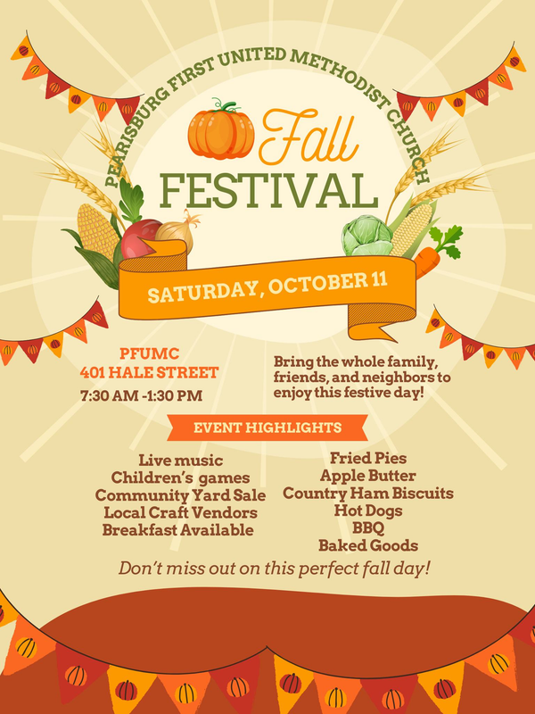 Pearisburg First United Methodist Church presents their 2025 Fall Festival on Saturday, October 11, 2025.