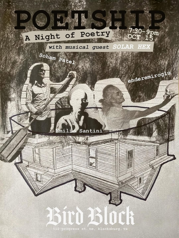 Bird Block Studio presents Poetship: A Night of Poetry with Music Guest Solar Hex on Wednesday, October 15, 2025.