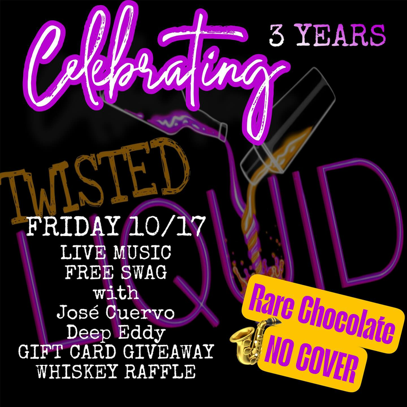 Twisted Liquid Blacksburg presents their Three Year Anniversary Celebration on Friday, October 17, 2025.