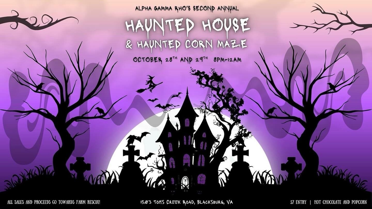 Alpha Gamma Rho presents their Second Annual Haunted House & Haunted Corn Maze on Tuesday, October 28, 2025 and Wednesday, October 29, 2025 from 8:00 PM to Midnight on both nights.