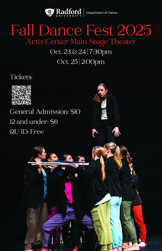 The Radford University College of Visual & Performing Arts and the Department of Dance Artis presents the Fall Dance Festival 2025 with three performances starting on Thursday, October 23, 2025 through Saturday, October 25, 2025.