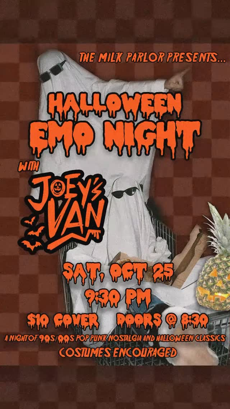 The Milk Parlor presents a Halloween Emo Night with Joey's Van in concert on Saturday, October 25, 2025.