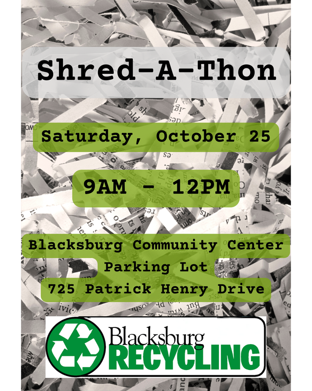 The Town of Blacksburg presents a Drive-Thru Shred-A-Thon on Saturday, October 25, 2025 in the Blacksburg Community Center parking lot.