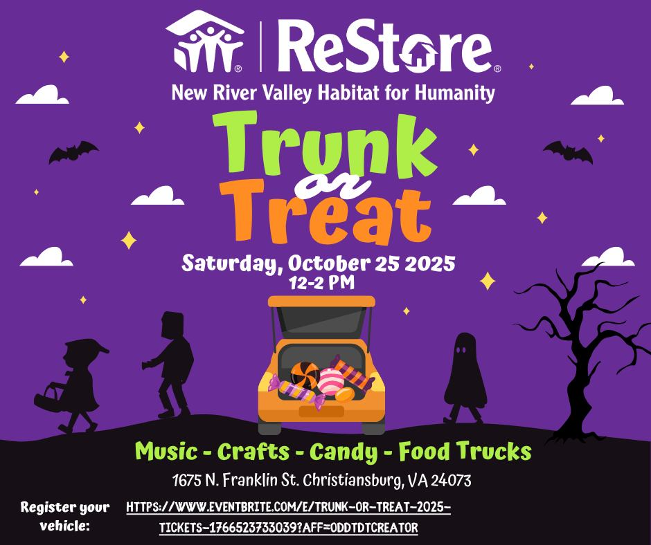 Habitat for Humanity ReStore presents their 2025 Trunk-or-Treat on Saturday, October 25, 2025.