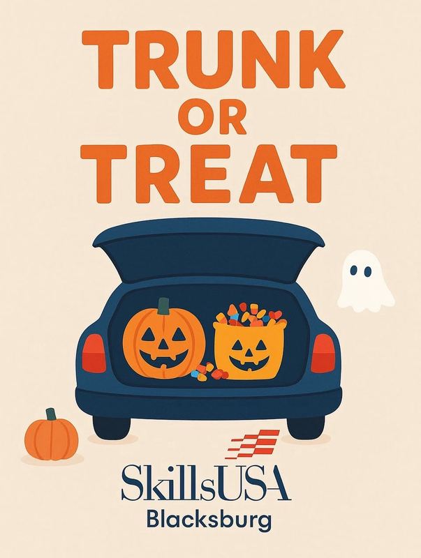 Blacksburg High School Chapter of SkillsUSA presents the Inaugural Blacksburg High School Trunk or Treat on Wednesday, October 29, 2025.