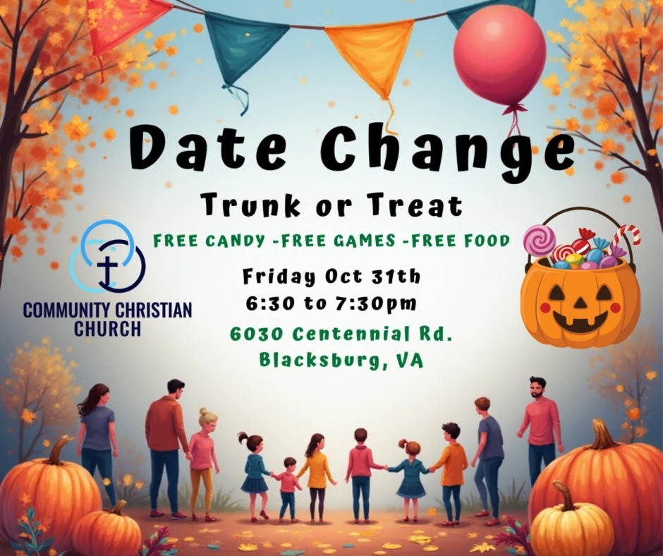 Note: Due to the weather forecast the date of the Trunk or Treat has switched from Wednesday, October 29, 2025 to Halloween night on Friday, October 31, 2025.