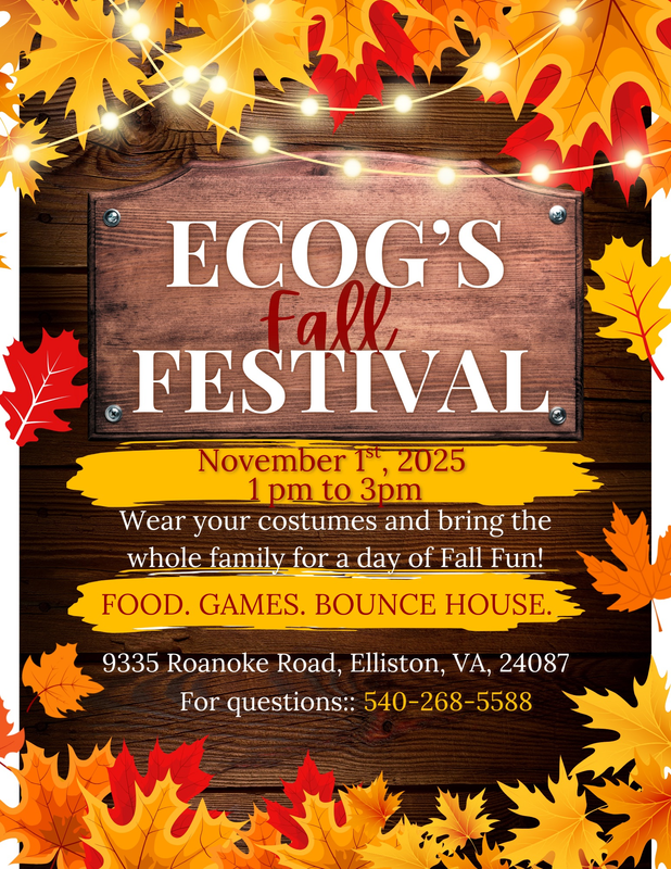 Elliston Church of God presents 2025 Fall Festival on Saturday, November 1, 2025.