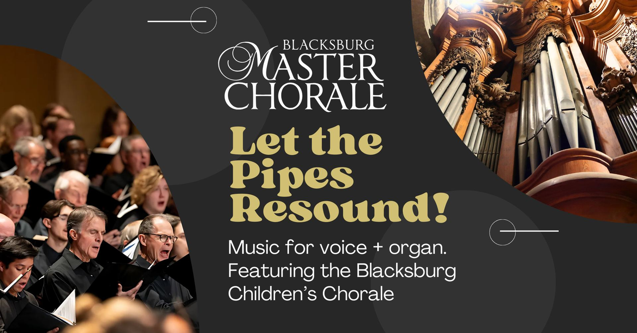 Blacksburg Master Chorale presents "Let the Pipes Resound! Music for Choir and Organ" on Sunday, November 2, 2025 at Blacksburg Presbyterian Church.