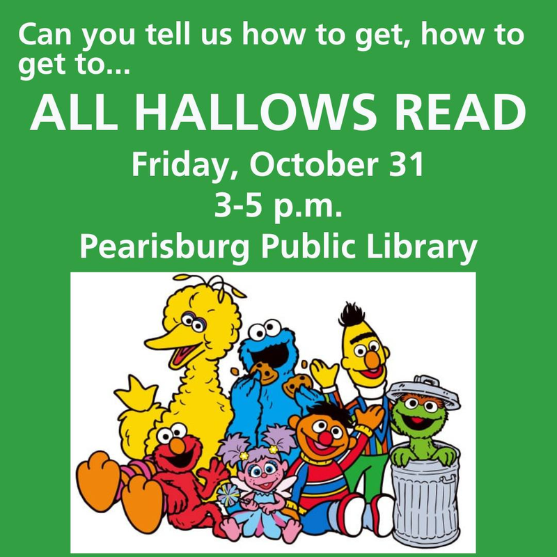 All Hallows Read is back this year with a Sesame Street theme. Enjoy an afternoon filled with fun activities, candy, refreshments and more fun for the whole family!