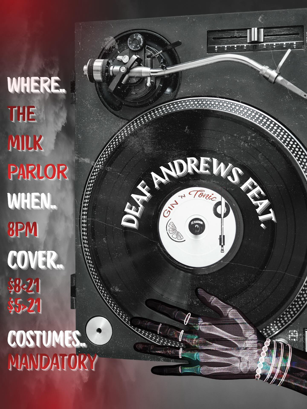 Enjoy a two band show with headliner Deaf Andrews and featuring Gin N Tonic. Costumes are mandatory.