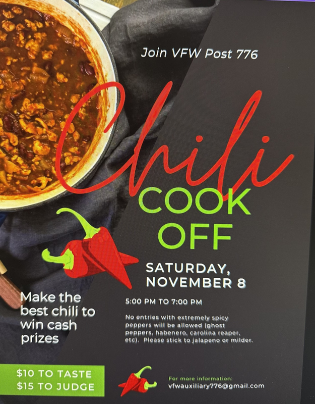 VFW Post 776 in Radford, VA presents their 2nd Annual Chili Cook Off on Saturday, November 8, 2025.
