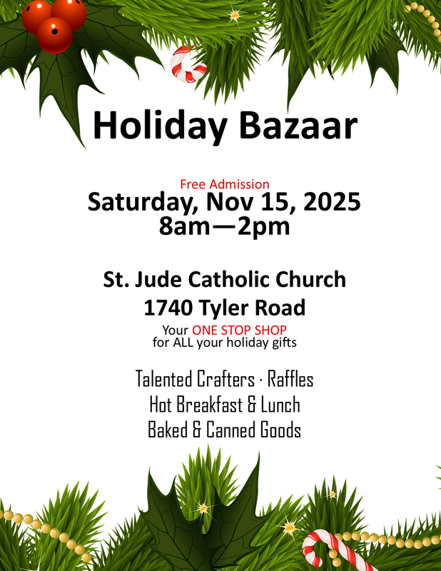 St. Jude Catholic Church presents their Annual Holiday Bazaar on Saturday, November 15, 2025.