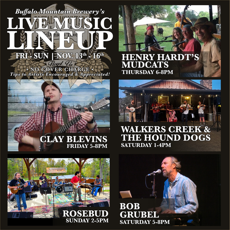 Buffalo Mountain Brewery presents Bob Grubel in concert on Saturday, November 15, 2025.