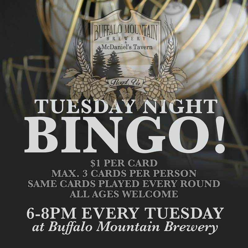 Buffalo Mountain Brewery presents their Weekly Bingo Night on Tuesday, December 23, 2025.