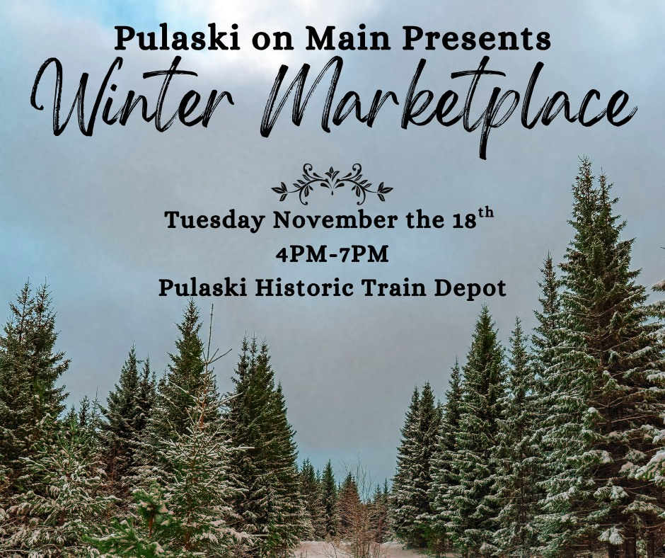 Pulaski on Main presents their Winter Marketplace on Tuesday, November 18, 2025 at the historic Pulaski Train Station.